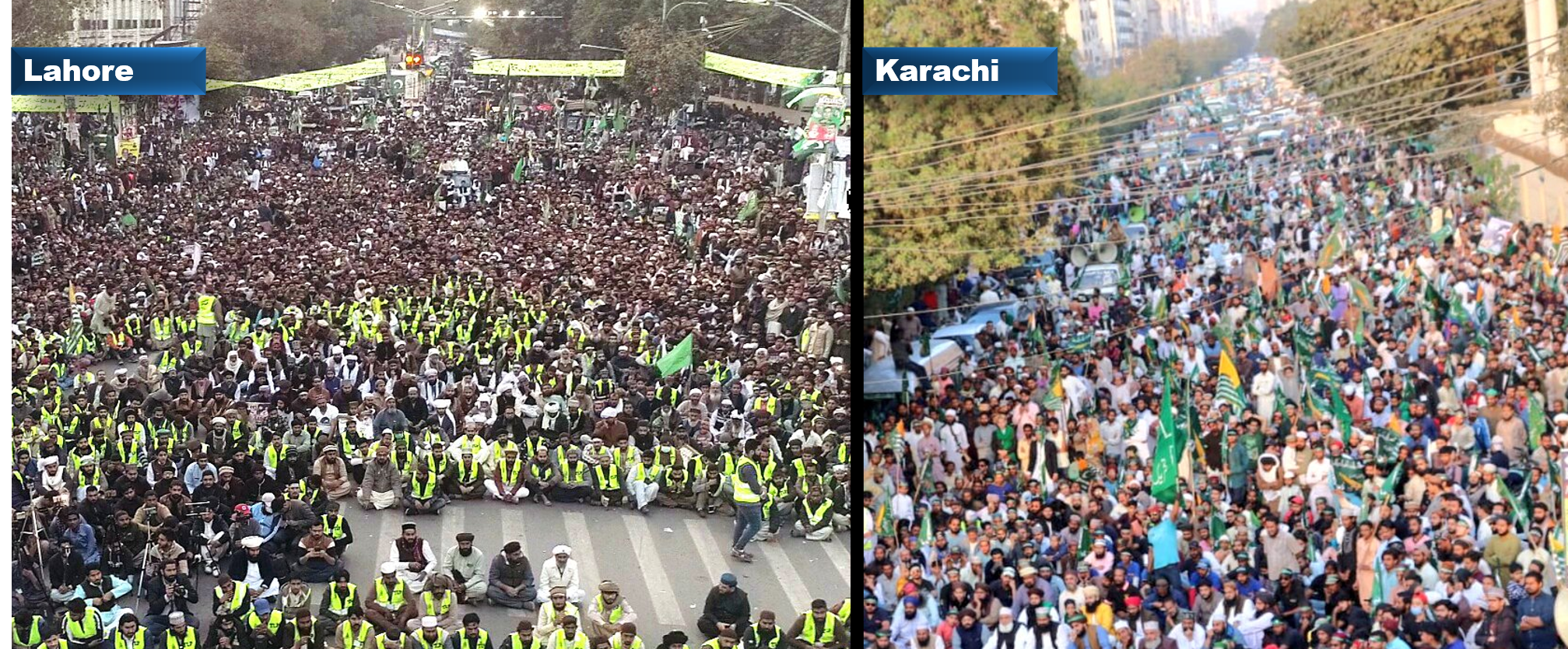 In their speeches in Lahore and Karachi, the central leaders once again reminded government to abide by Faizabad pact 2020. Otherwise, government will be responsible for any disruption.