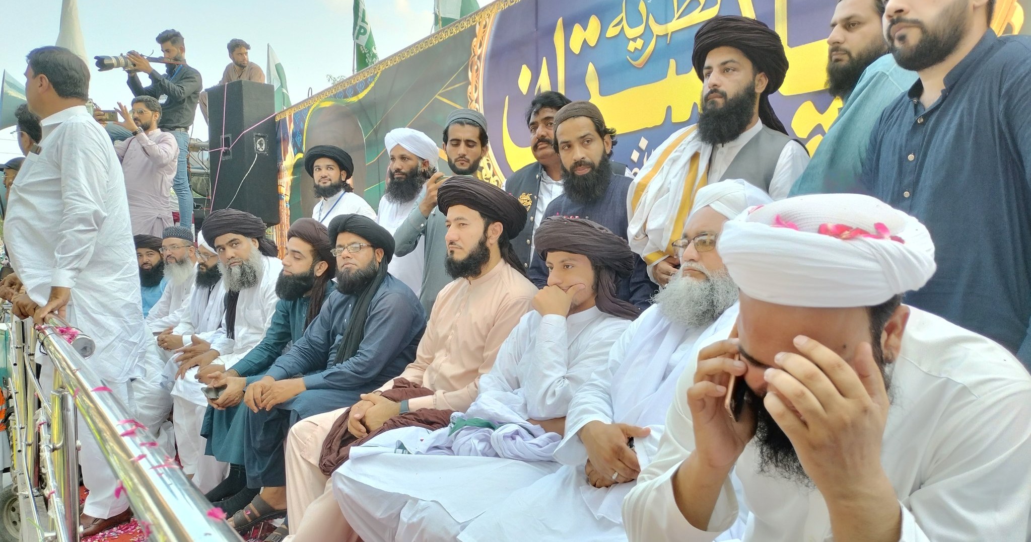 - 05:05 PM- TLP leaders appearing on stage. Central leaders are on stage now including Qazi Mehmood Awan, Dr. Shafique Ameeni and Peer Syed Inayat ul Haq Shah.
